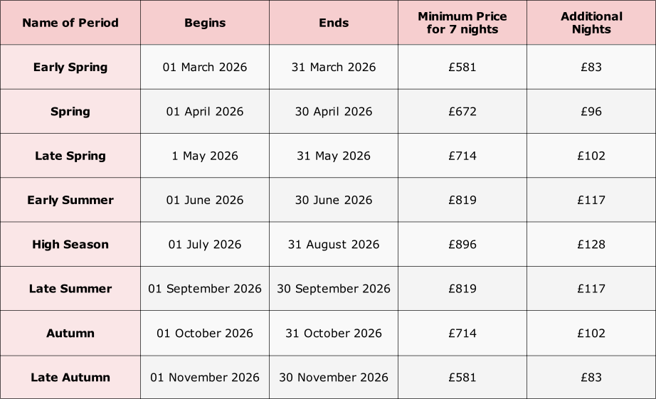 A £100 deposit is required to book the property, the balance being payable 6 weeks before the start of your holiday.